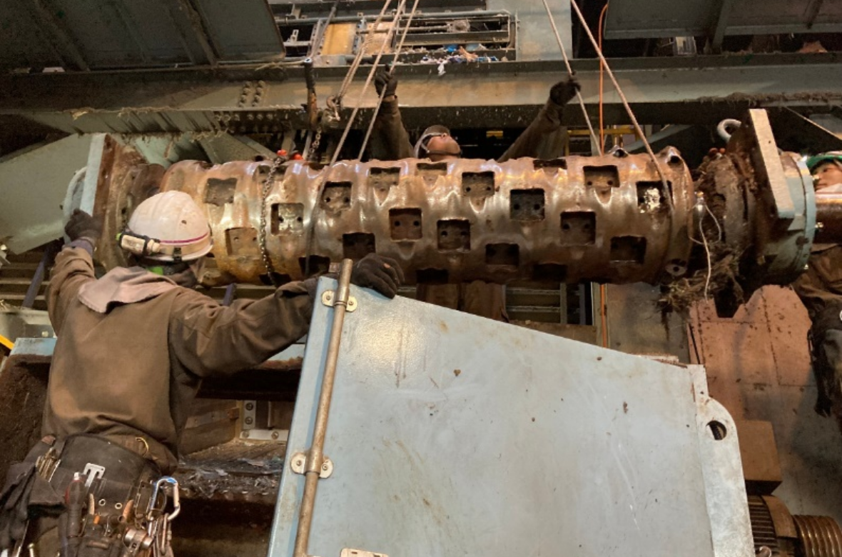 【1軸破砕機】摩耗したローターを交換。