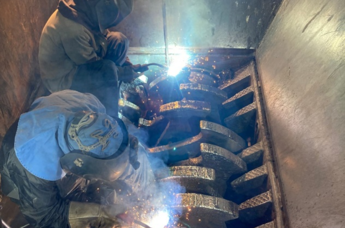 【破砕機】摩耗してしまった回転刃の肉盛を行います。